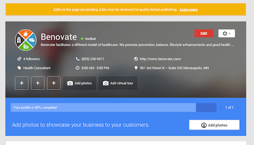 • On this interface, you’re able to add and edit photos, phone numbers, hours of operation, business addresses, and virtual tours