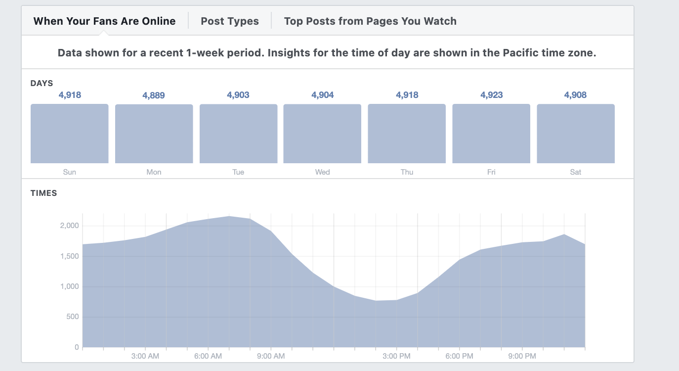 Facebook makes it relatively easy to figure this out. When looking at your Facebook Page, you’ll see a list of options on the left-hand side. First, you’ll select the option titled “Insights.” From there, you’ll select “Posts.” Then, you’ll see a graph at the top of the page detailing when your audience is most active. For those that are visual learners, here’s a step-by-step: